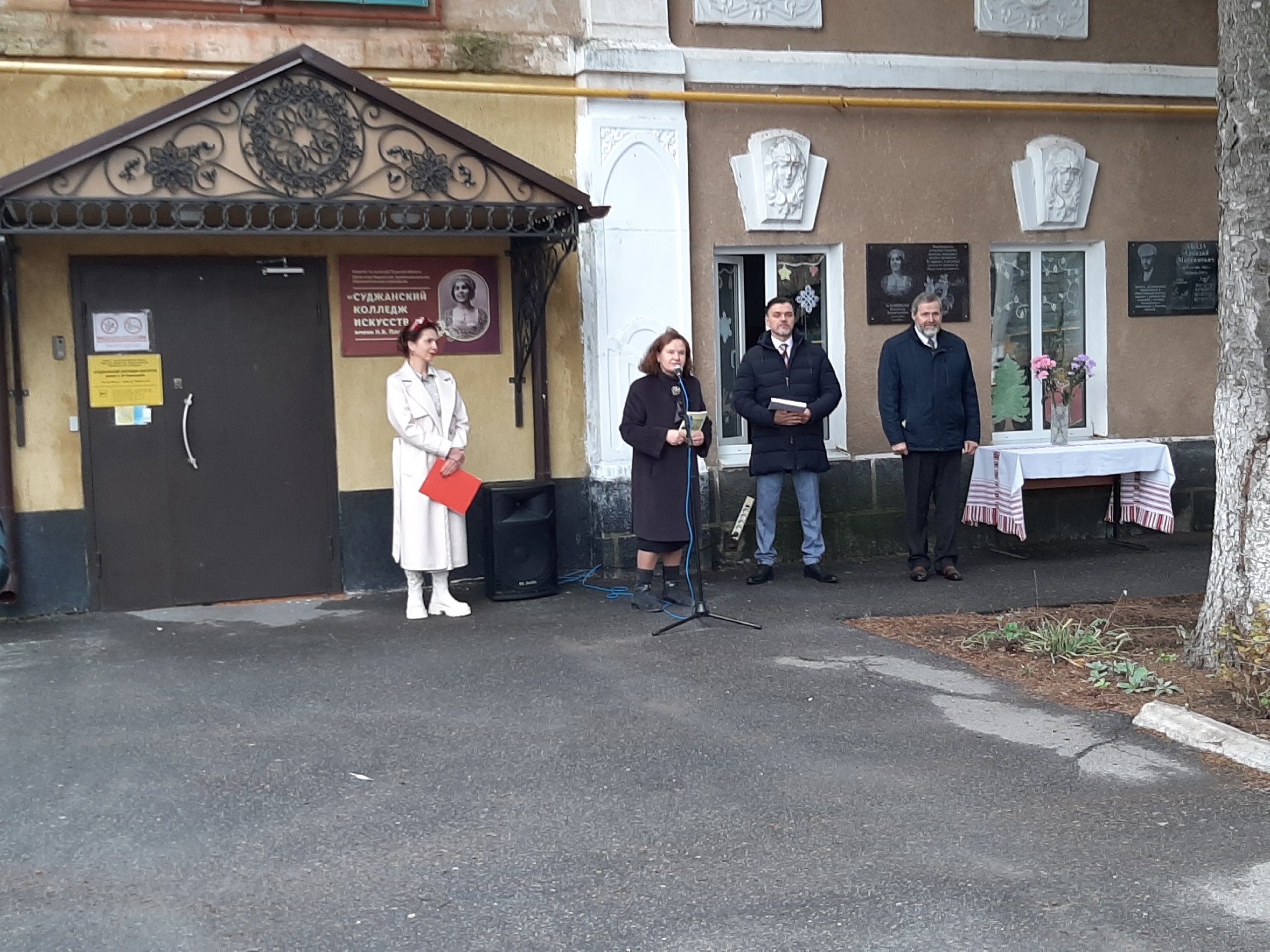 На открытие мемориальных досок и творческом вечере присутствовали доцент кафедры дошкольного, начального образования и коррекционной педагогики Курского института развития образования, автор монографии об Аркадии Абазе Брежнева Татьяна Анатольевна, преподаватели и студенты колледжа, школьники, представители власти и учреждений района.