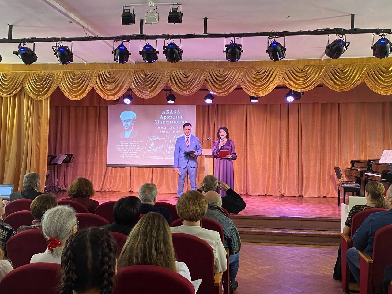 Сегодня в концертном зале ОБПОУ "Суджанский колледж искусств им. Н.В. Плевицкой" был проведен первый творческий вечер , посвященный жизненному и творческому пути Аркадия Максимовича Абазы.